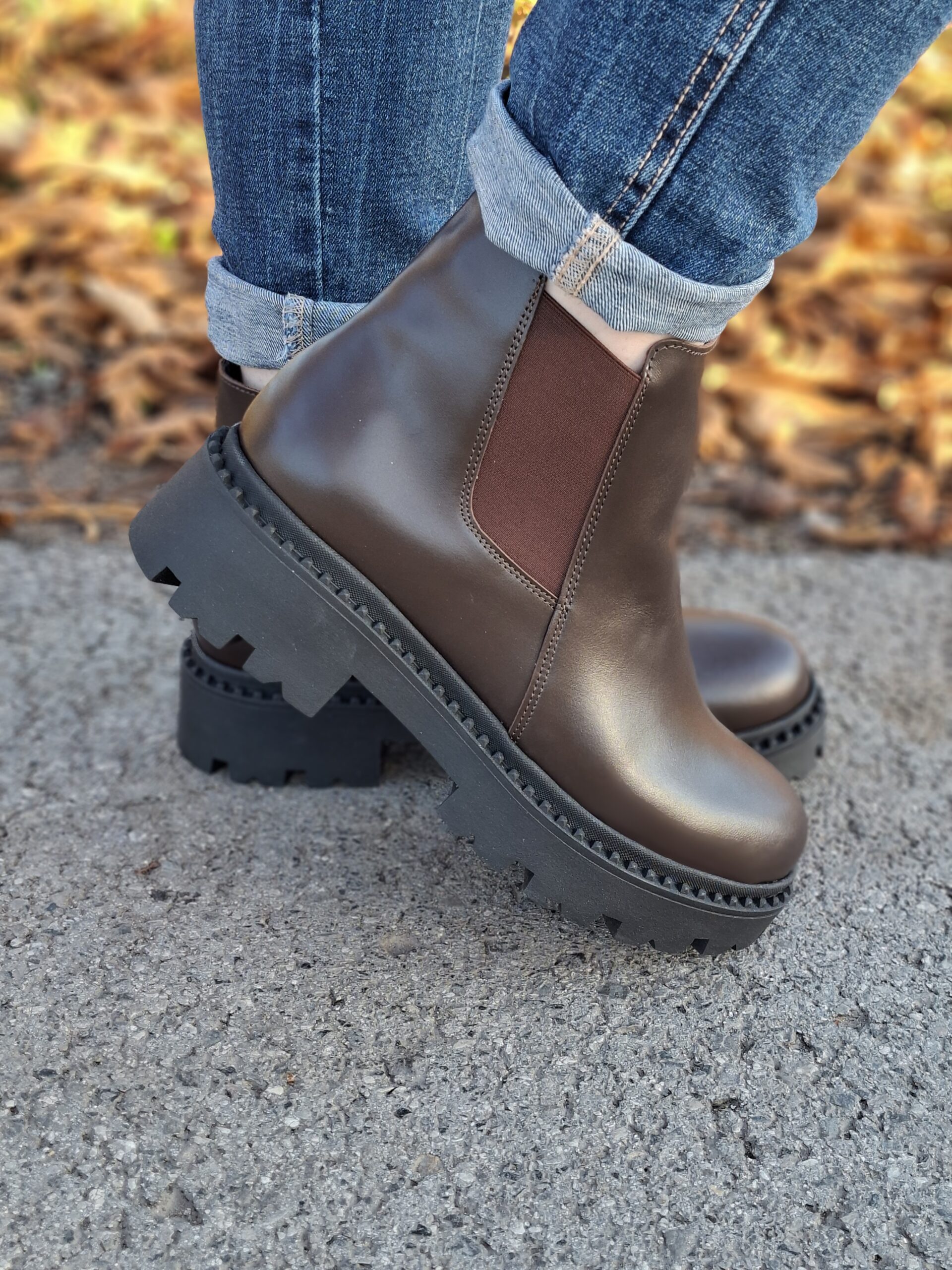 Chelsea Bordeaux botki z elastyczną wstawką brąz