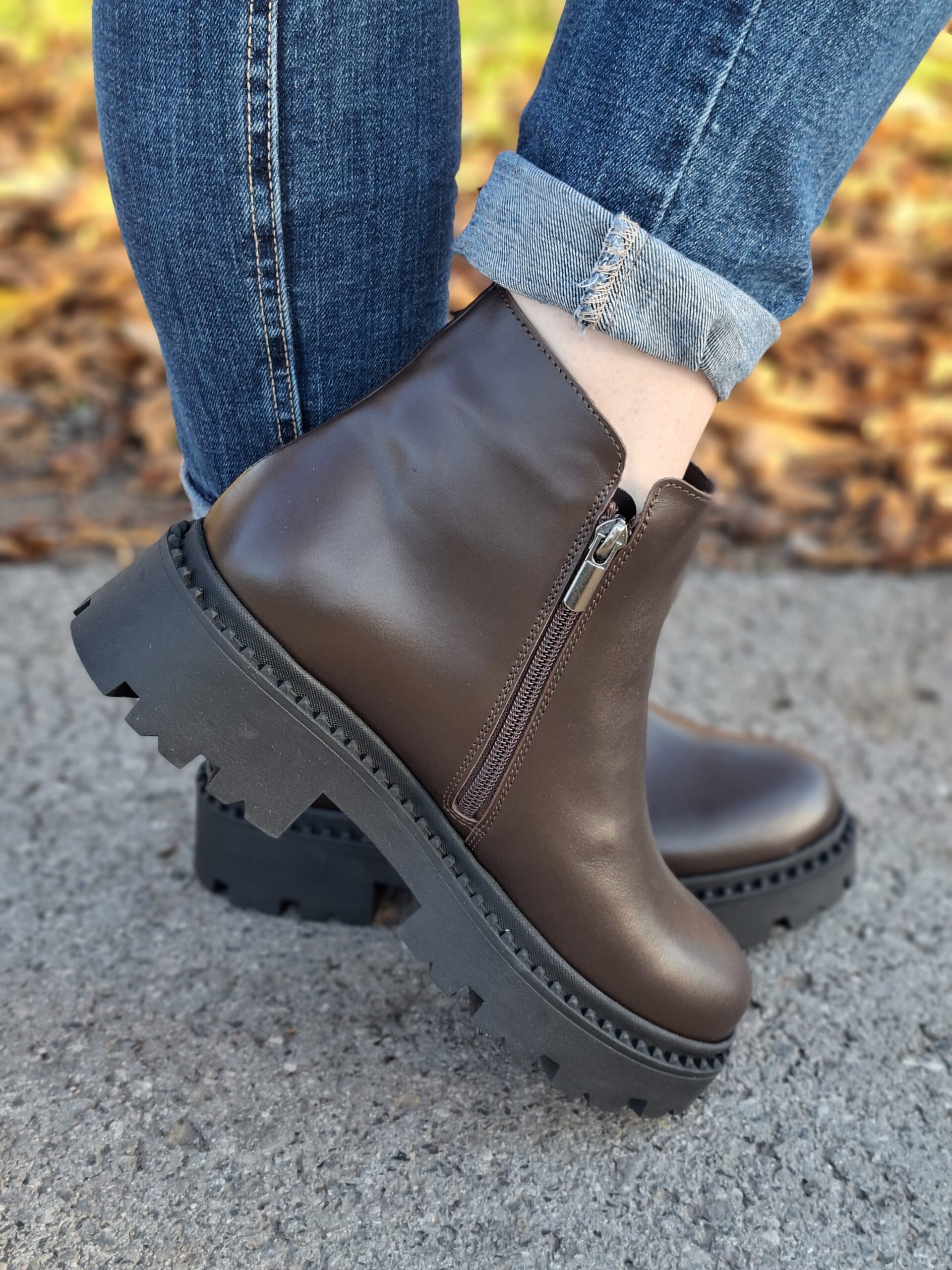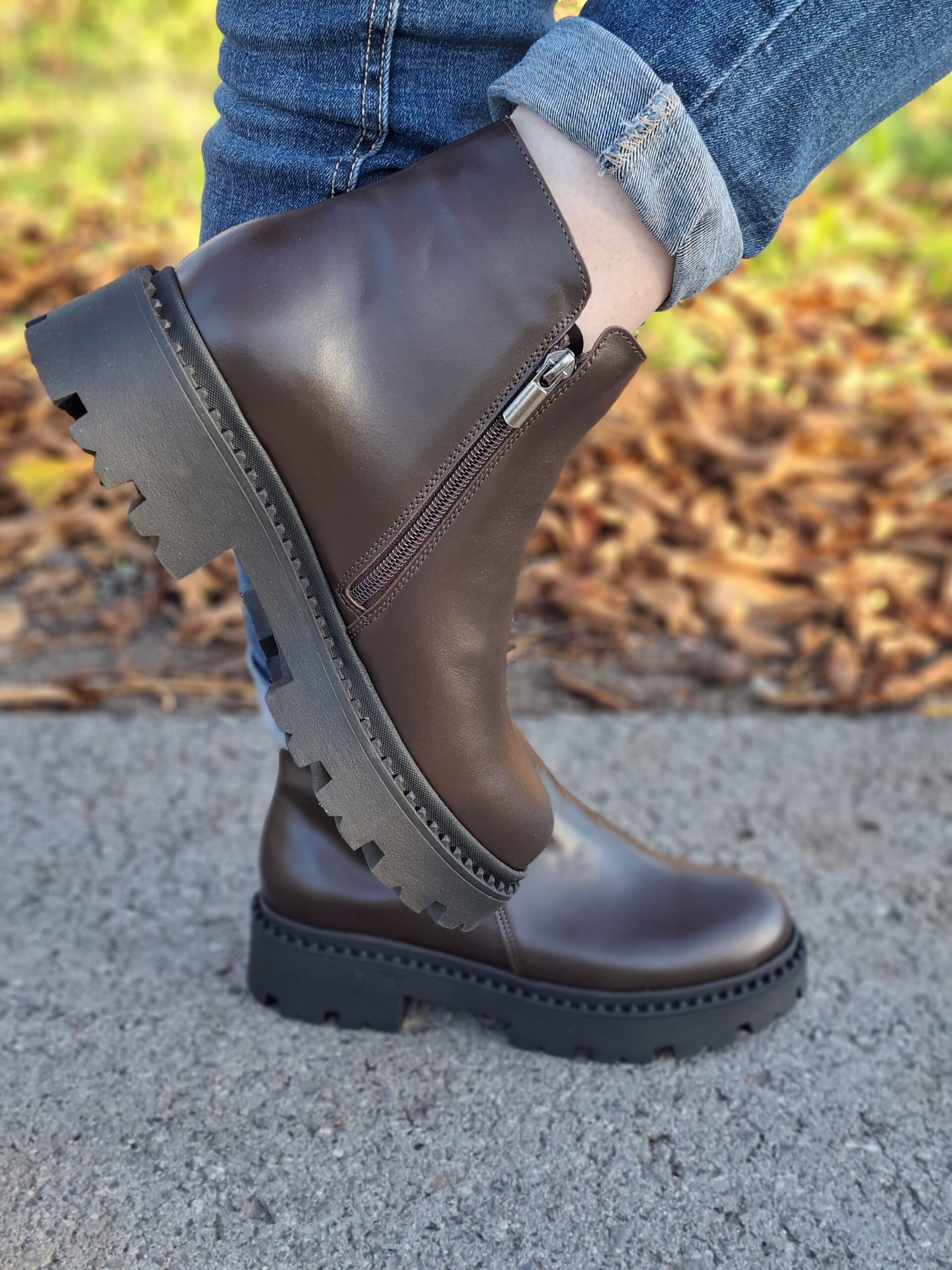 Polska produkcja. 100% skóra naturalna. Mozliwość wyboru ocieplenia. Wysokość podeszwy 5 cm z lekkiego materiału . Wysokość Cholewki 12 cm.
