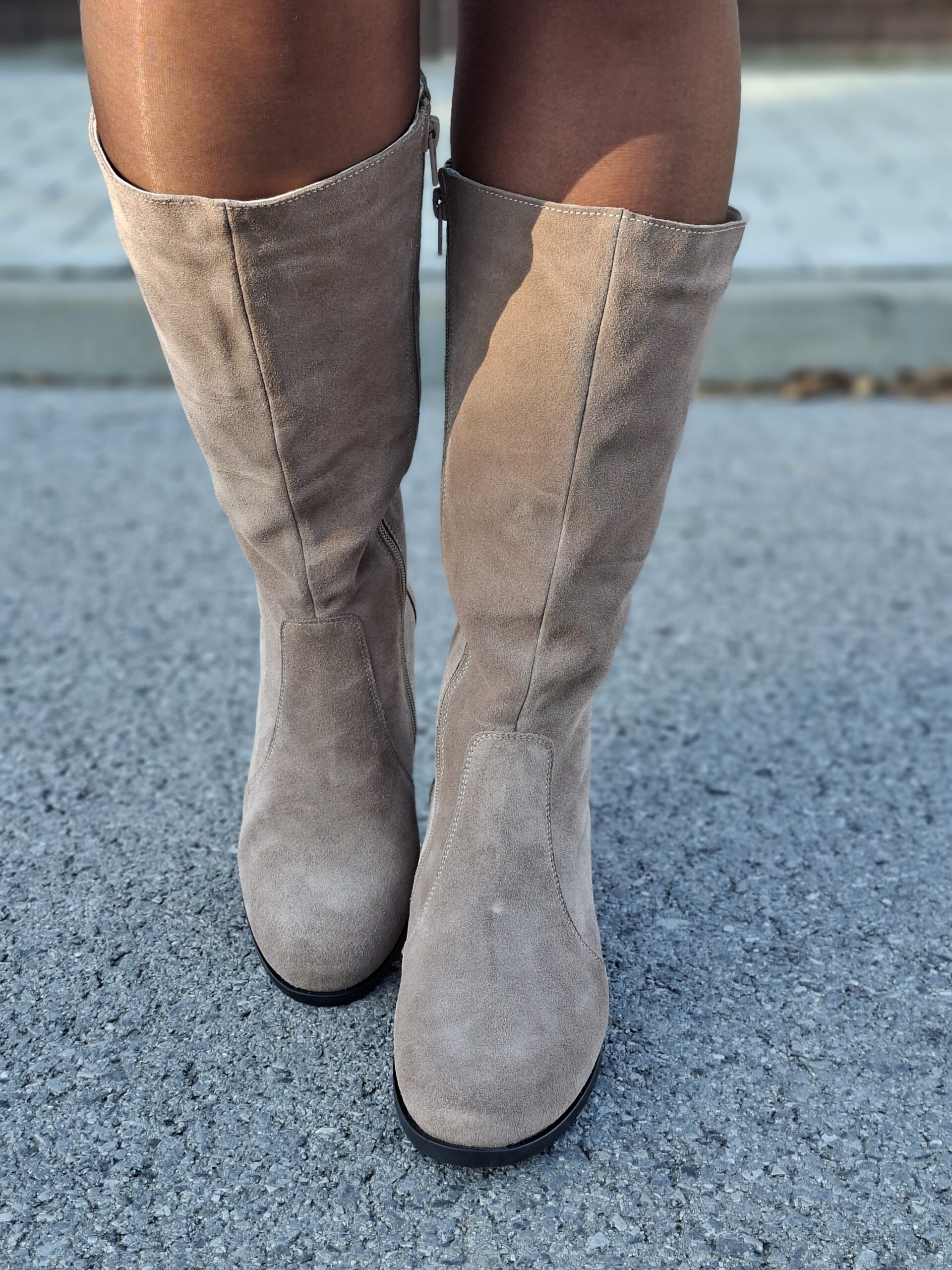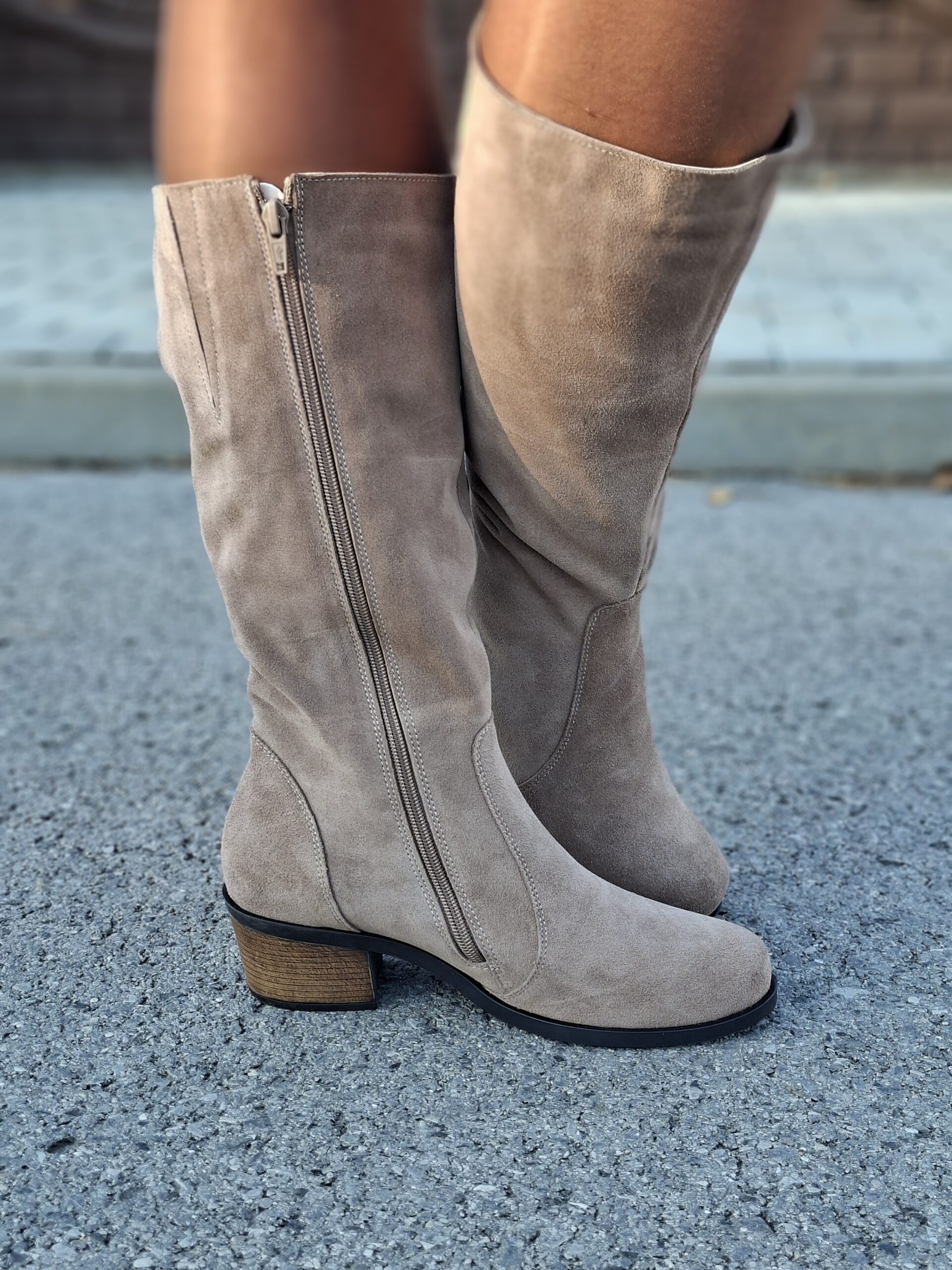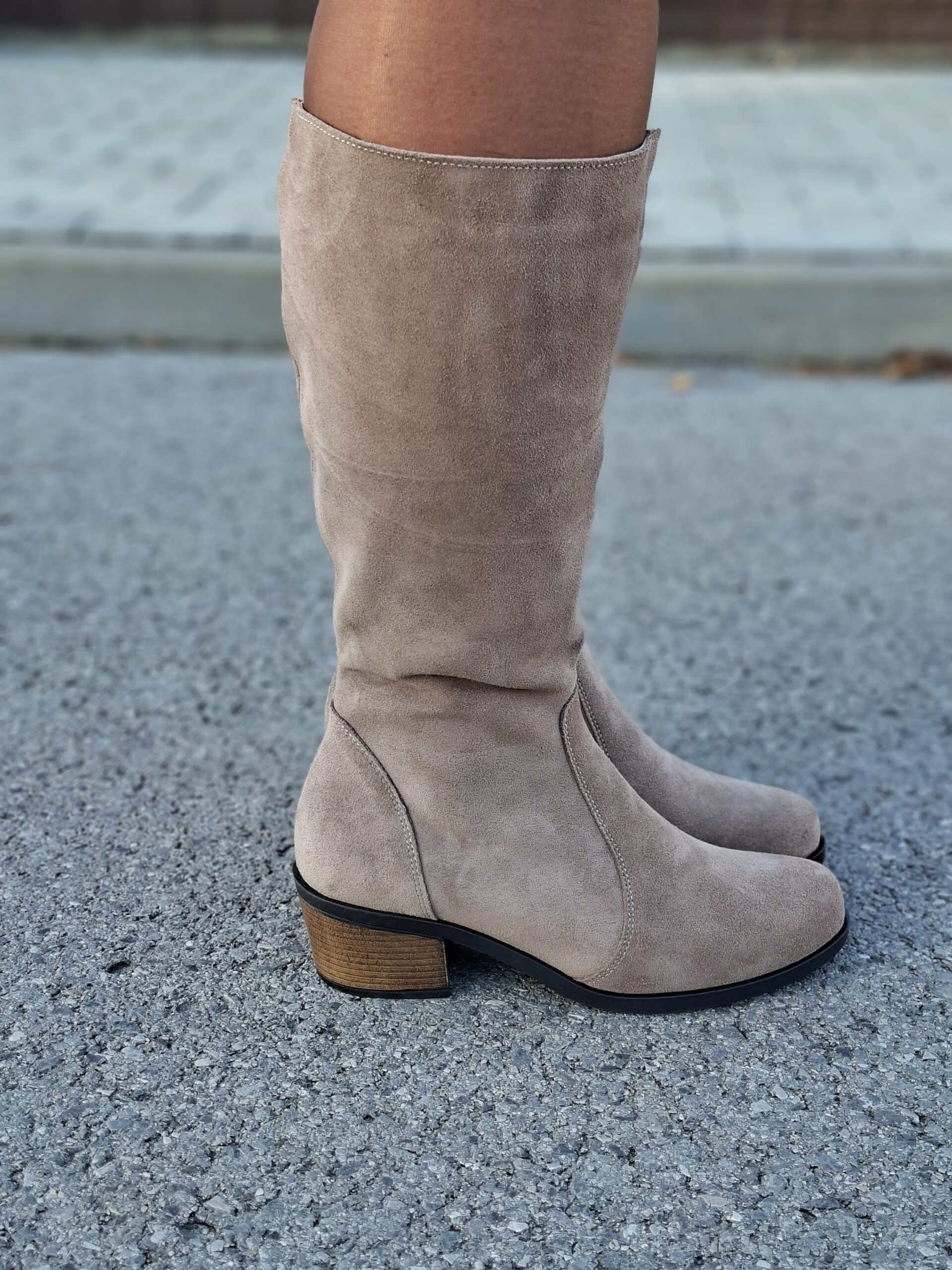 Kozaki Raven skóra naturalna zamszowa beżowe