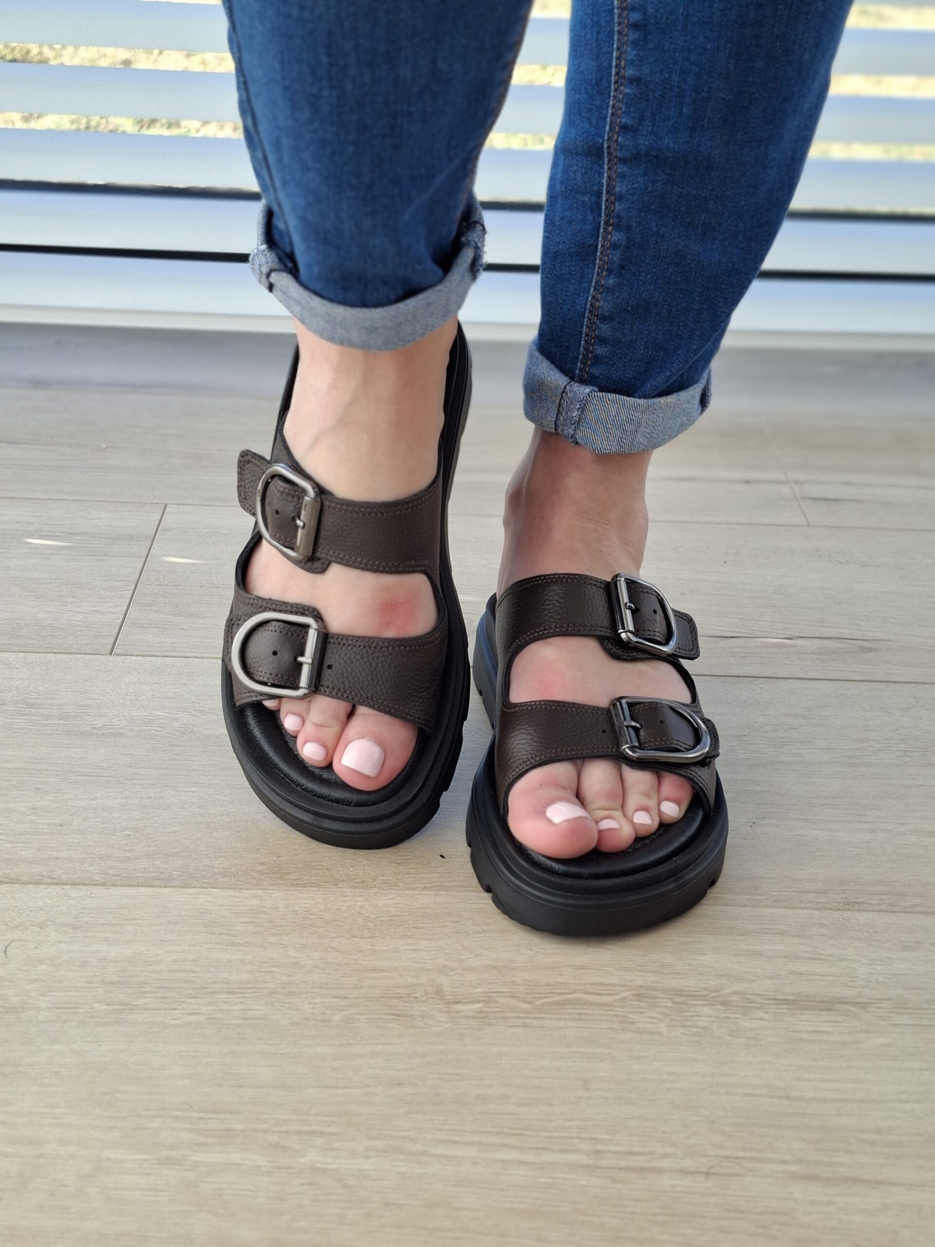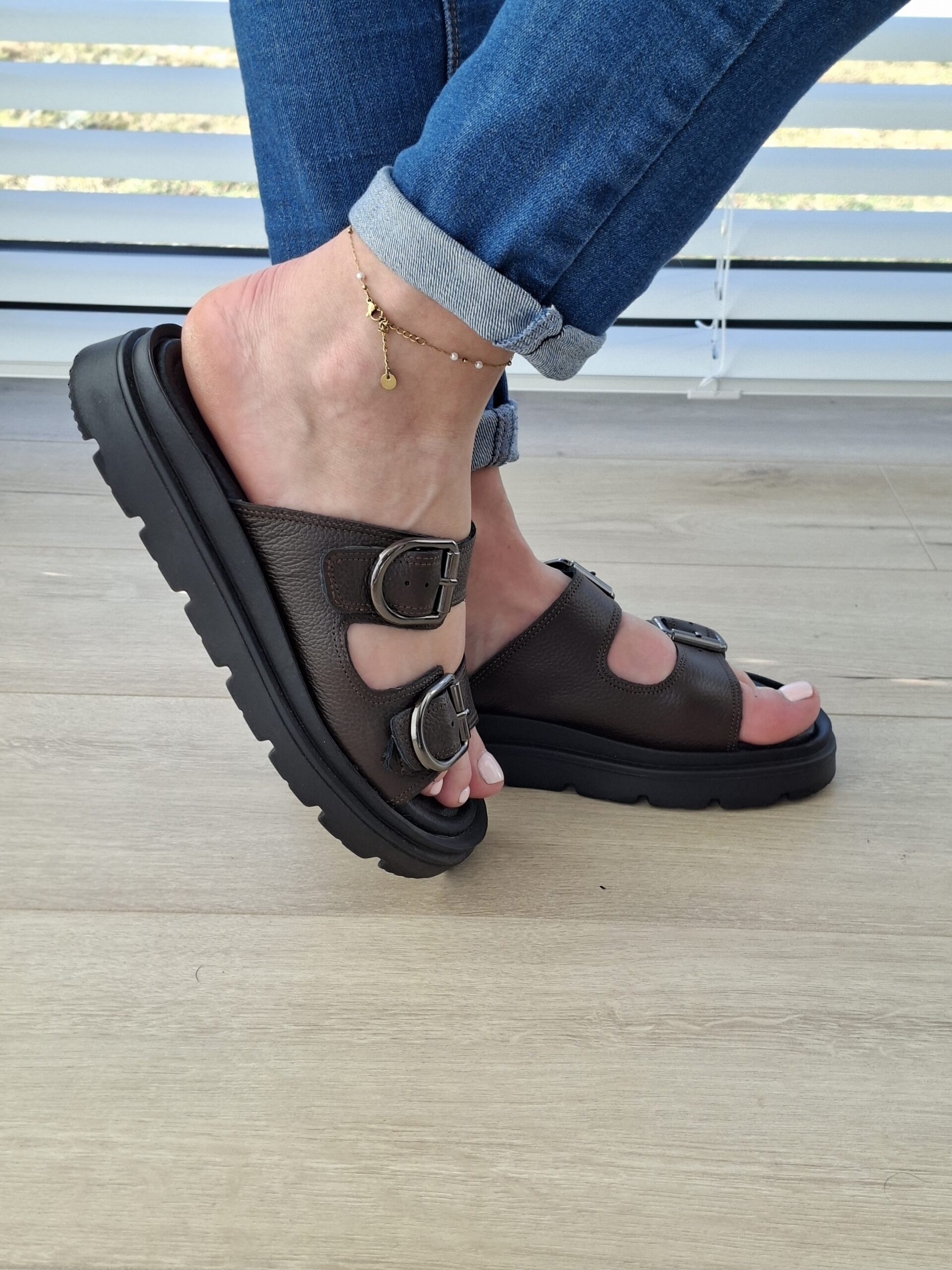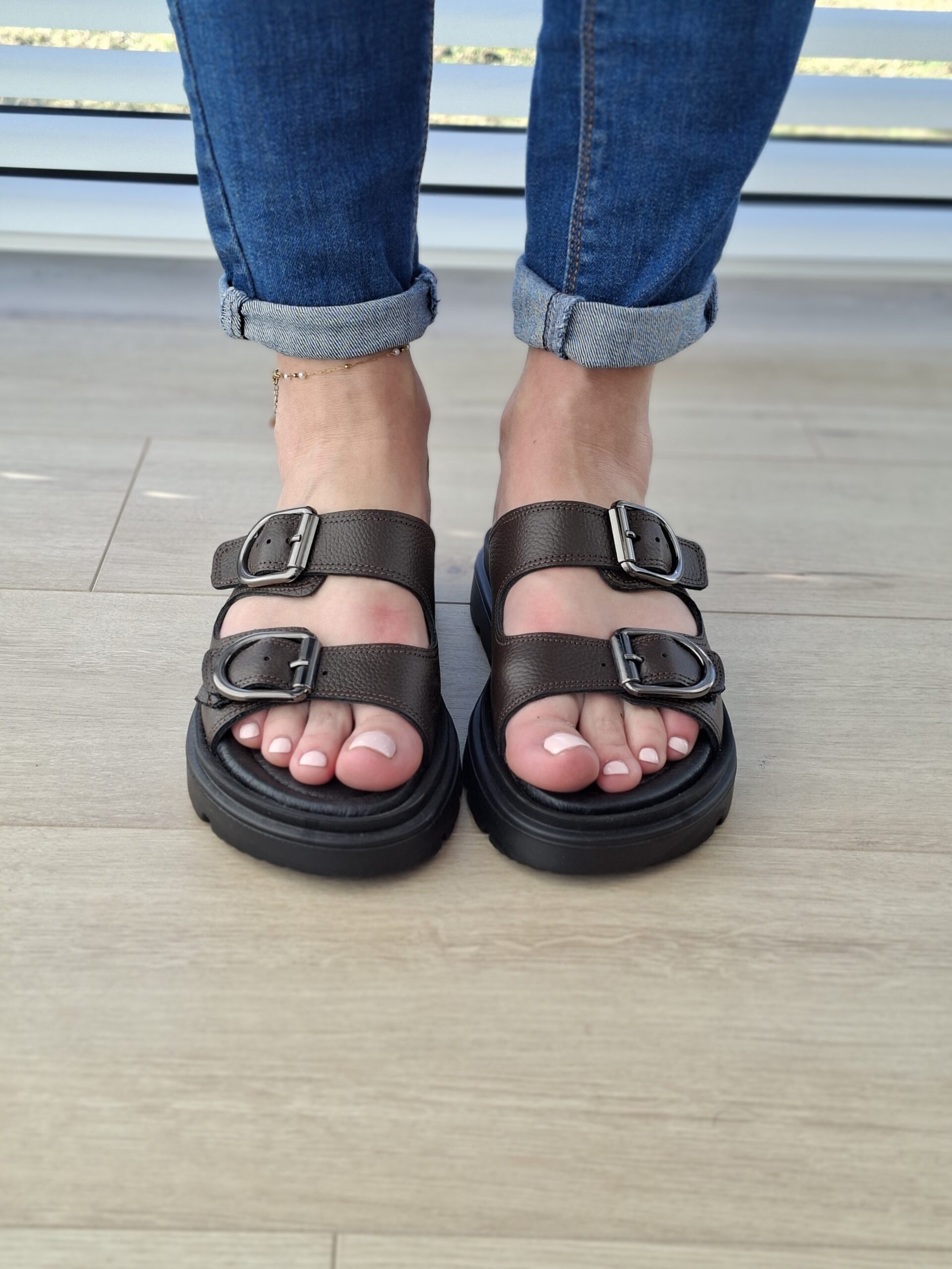 Riviera brązowe skórzane klapki z regulacją na klamry