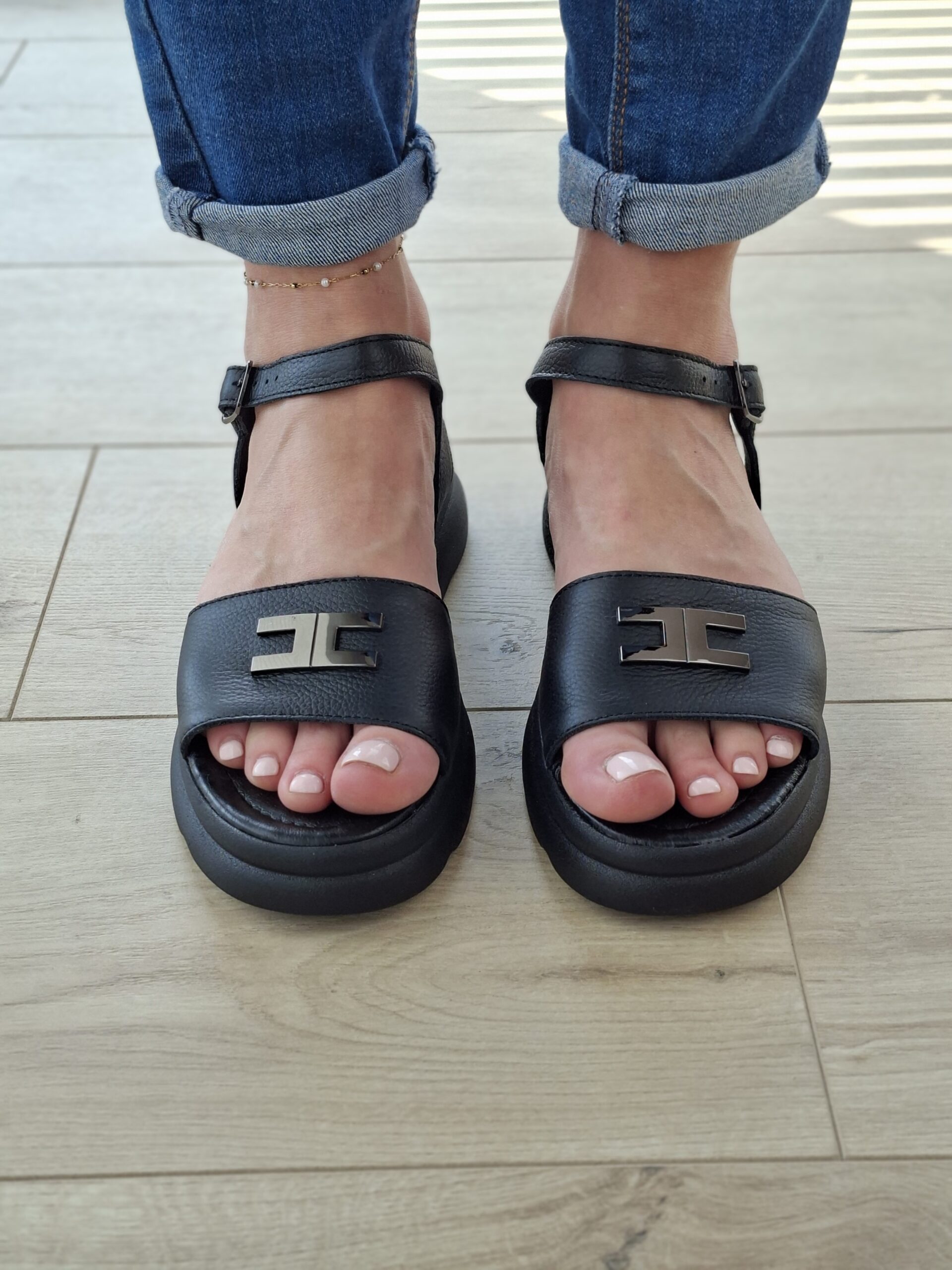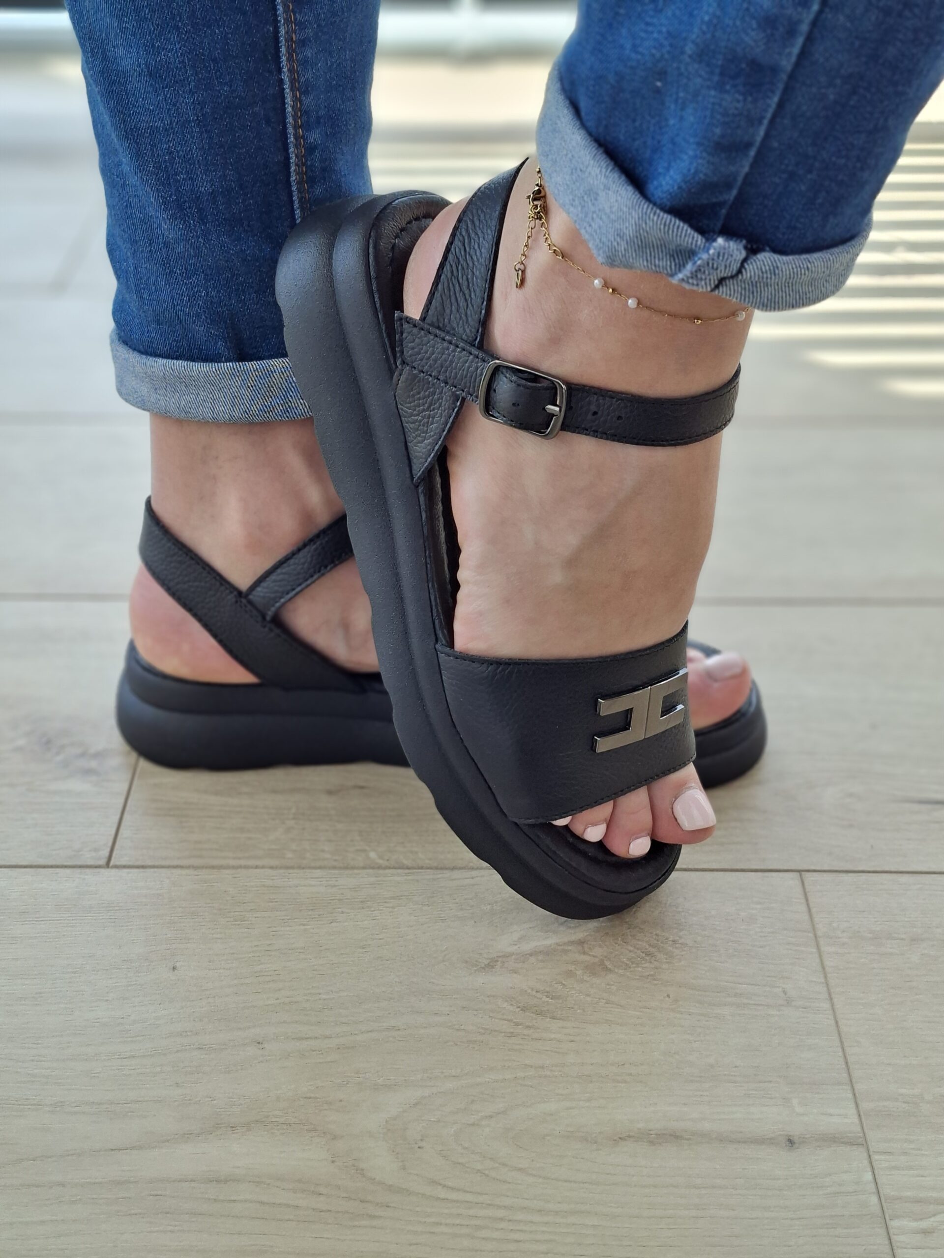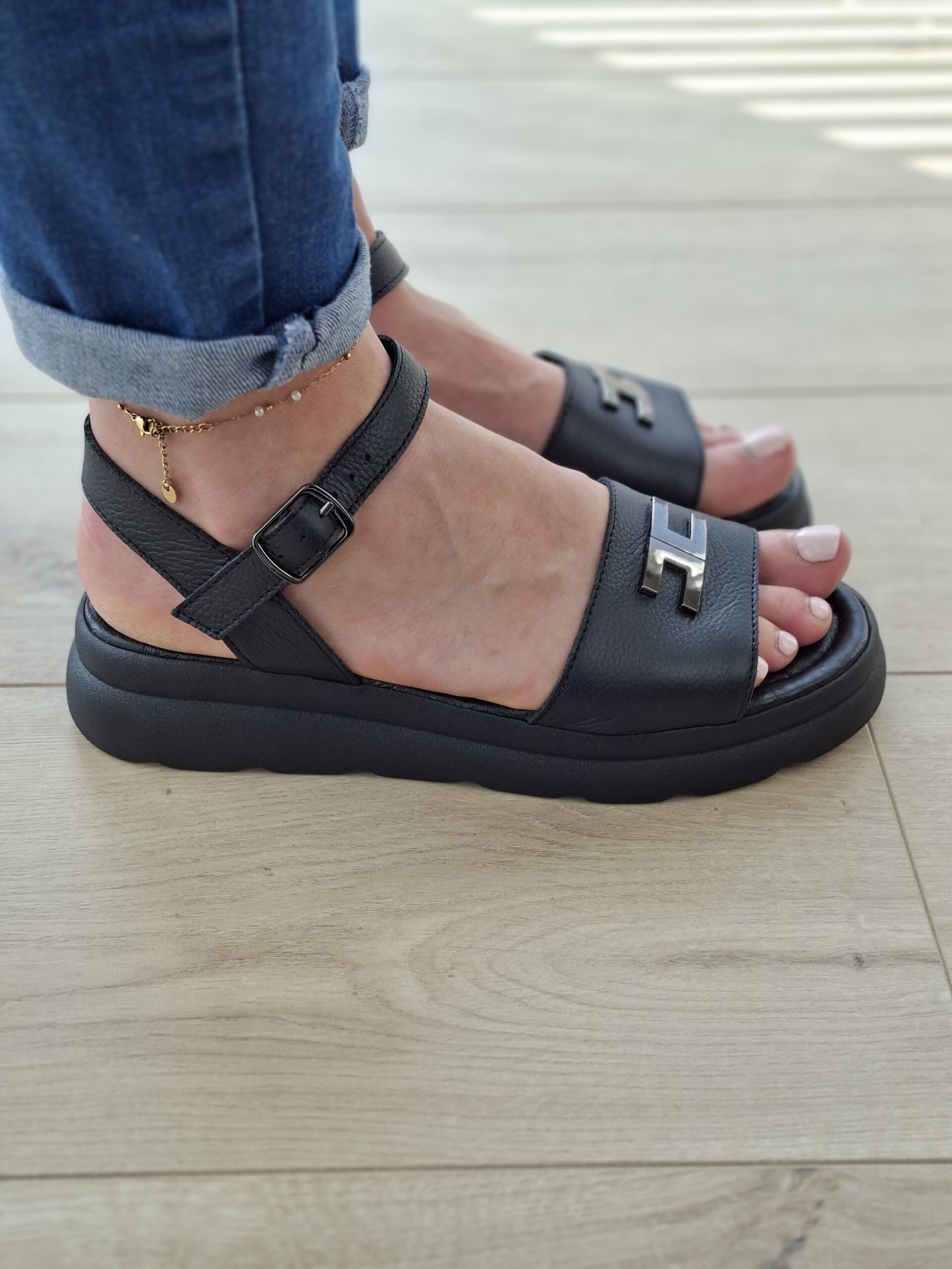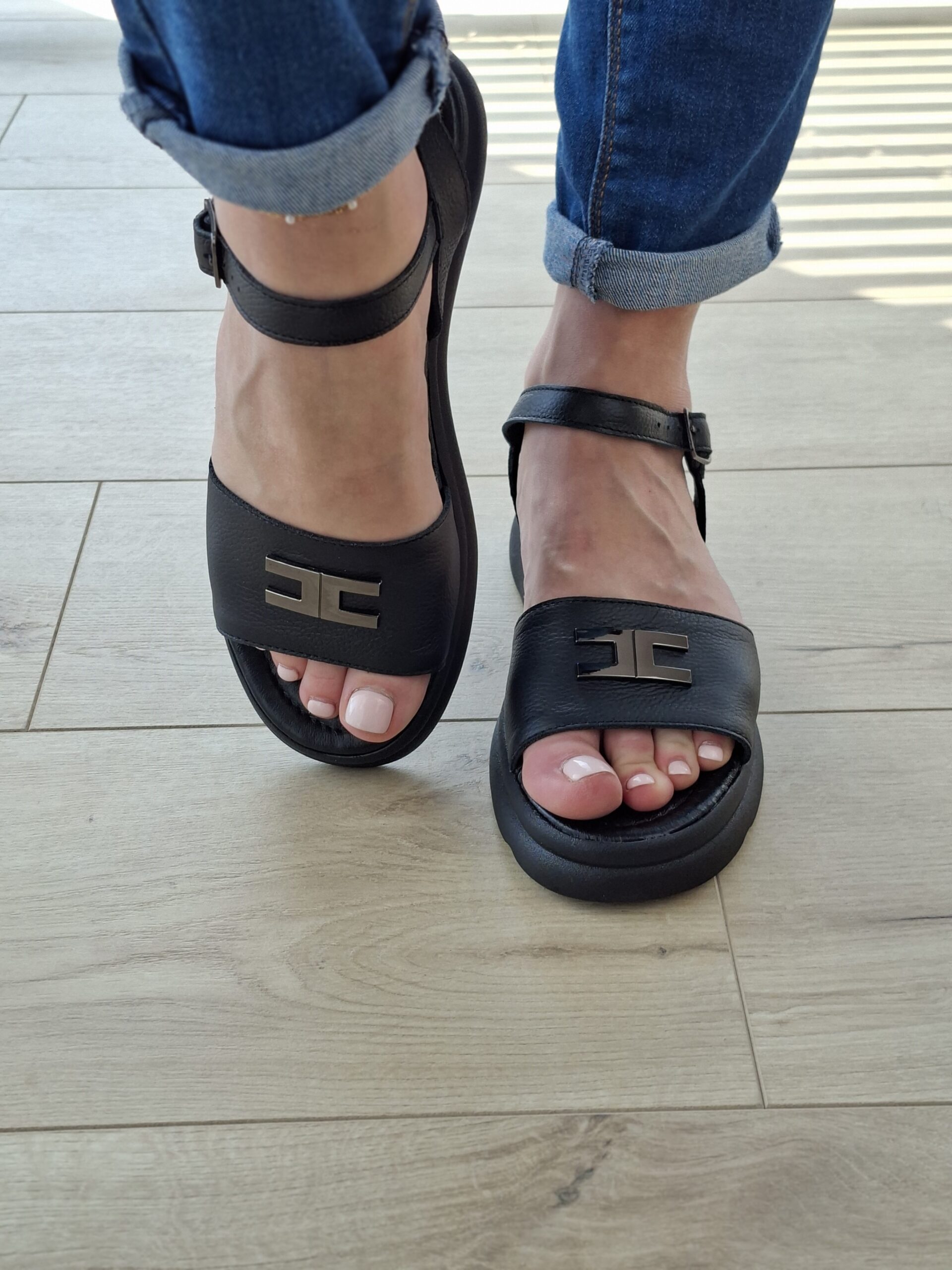 Czarny sandał ze skóry naturalnej, na miękkiej podeszwie Velora